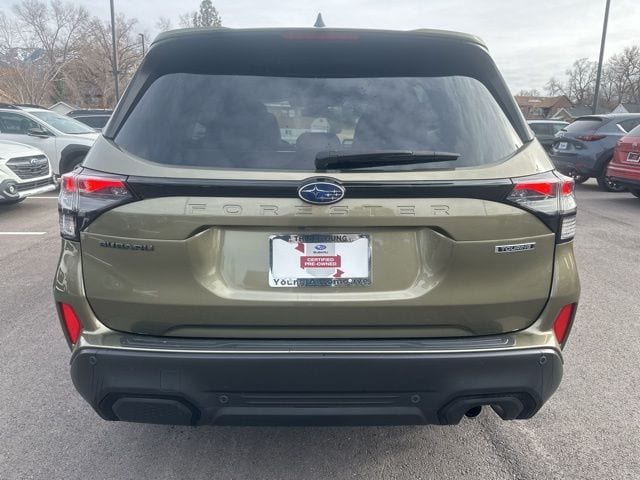 This 2025 Subaru Forester Touring is finished in stunning Autumn Green Metallic with a refined black leather interior and has just 11,738 miles, making it a fantastic value over new. As a Subaru Certified Pre-Owned vehicle, it delivers added peace of mind with Subaru-backed inspection and warranty coverage. The Touring trim offers top-of-the-line comfort, premium materials, and advanced safety technology, paired with Subarus legendary Symmetrical All-Wheel Drive for year-round confidence. Experience luxury, capability, and value schedule your test drive today at Young Auto Group!