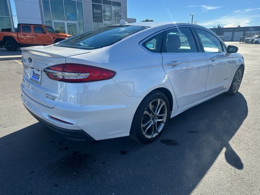 43/41 City/Highway MPG NON SMOKER, REAR CAMERA, MOONROOF/SUNROOF, APPLE CARPLAY/ANDROID AUTO, BLUETOOTH, I4 Hybrid, 12 Speakers, 4-Wheel Disc Brakes, ABS brakes, Air Conditioning, Alloy wheels, AM/FM radio: SiriusXM, Auto High-beam Headlights, Auto-dimming door mirrors, Auto-dimming Rear-View mirror, Automatic temperature control, Brake assist, Bumpers: body-color, CD player, Compass, Delay-off headlights, Driver door bin, Driver vanity mirror, Dual front impact airbags, Dual front side impact airbags, Electronic Stability Control, Emergency communication system: SYNC 3 911 Assist, Equipment Group 650A, Exterior Parking Camera Rear, Four wheel independent suspension, Front anti-roll bar, Front Bucket Seats, Front Center Armrest, Front dual zone A/C, Front fog lights, Front License Plate Bracket, Front reading lights, Fully automatic headlights, Garage door transmitter, Heated door mirrors, Heated front seats, Heated steering wheel, Illuminated entry, Knee airbag, Lane Departure Warning System, Leather Heated/Cooled Sport Bucket Seats, Low tire pressure warning, Memory seat, Navigation System, Occupant sensing airbag, Outside temperature display, Overhead airbag, Overhead console, Panic alarm, Passenger door bin, Passenger vanity mirror, Power door mirrors, Power driver seat, Power moonroof, Power passenger seat, Power steering, Power windows, Radio data system, Radio: AM/FM Stereo w/MP3/Single-CD Player, Rain sensing wipers, Rear anti-roll bar, Rear Parking Sensors, Rear reading lights, Rear seat center armrest, Rear window defroster, Remote keyless entry, Security system, Speed control, Speed-sensing steering, Speed-Sensitive Wipers, Split folding rear seat, Spoiler, Steering wheel mounted audio controls, SYNC 3 Communications & Entertainment System, Tachometer, Telescoping steering wheel, Tilt steering wheel, Traction control, Trip computer, Turn signal indicator mirrors, Variably intermittent wipers, Ventilated front seats, Wheels: 18" Premium-Painted Aluminum. White Platinum Clearcoat Metallic I4 Hybrid eCVT FWD