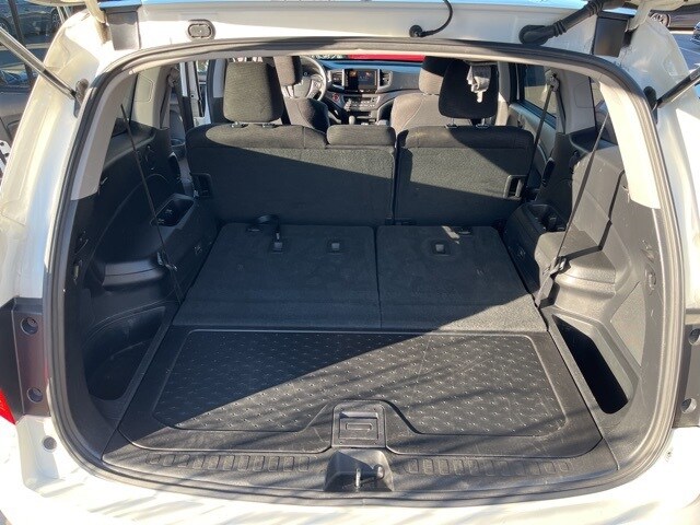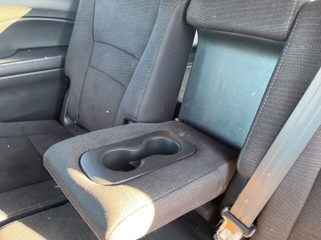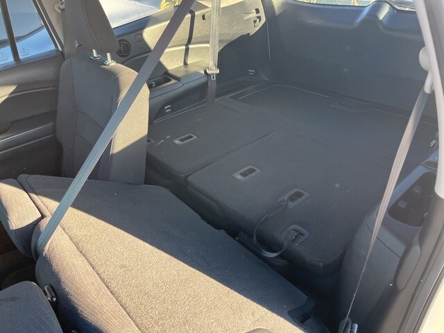 18" Alloy Wheels, 3rd row seats: split-bench, 4-Wheel Disc Brakes, 4.25 Axle Ratio, 7 Speakers, ABS brakes, Air Conditioning, Alloy wheels, AM/FM radio: SiriusXM, Apple CarPlay/Android Auto, Automatic temperature control, Brake assist, Bumpers: body-color, Cloth Seat Trim, Compass, Delay-off headlights, Driver door bin, Driver vanity mirror, Dual front impact airbags, Dual front side impact airbags, Electronic Stability Control, Exterior Parking Camera Rear, Four wheel independent suspension, Front anti-roll bar, Front Bucket Seats, Front Center Armrest, Front dual zone A/C, Front fog lights, Front reading lights, Fully automatic headlights, Garage door transmitter: HomeLink, Heated door mirrors, Illuminated entry, Low tire pressure warning, Occupant sensing airbag, Outside temperature display, Overhead airbag, Overhead console, Panic alarm, Passenger door bin, Passenger vanity mirror, Power door mirrors, Power driver seat, Power steering, Power windows, Radio data system, Radio: AM/FM Audio System, Rear air conditioning, Rear anti-roll bar, Rear reading lights, Rear seat center armrest, Rear window defroster, Rear window wiper, Remote keyless entry, Security system, SiriusXM Radio, Speed control, Speed-sensing steering, Speed-Sensitive Wipers, Split folding rear seat, Spoiler, Steering wheel mounted audio controls, Tachometer, Telescoping steering wheel, Tilt steering wheel, Traction control, Trip computer, and Variably intermittent wipers.