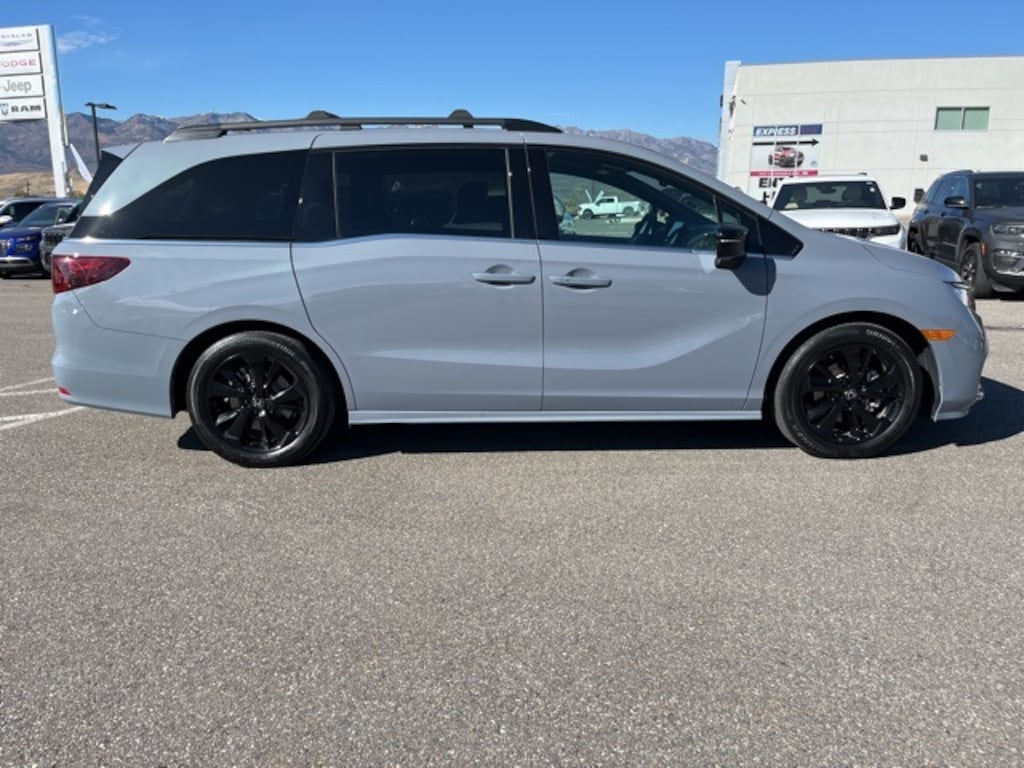 The 2024 Honda Odyssey Sport is where family practicality meets athletic flair. A minivan built not just for the daily grind, but for every adventure that comes after it. With its bold, blacked-out accents, gloss-black grille, and 19-inch black alloy wheels, the Odyssey Sport commands attention on the road while keeping its unmistakable Honda refinement intact. Inside, the cabin transforms into a sanctuary of versatility and style. Black leather-trimmed seats with red contrast stitching give the interior a sporty, upscale vibe, and every row is designed with passenger comfort in mind. Magic Slide second-row seats make it effortless to reconfigure for passengers or cargo, and the tri-zone automatic climate control ensures everyone rides happy.