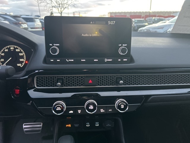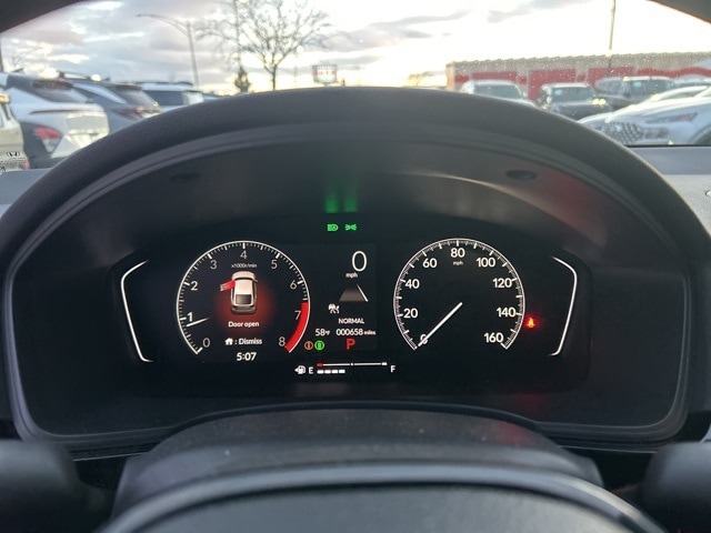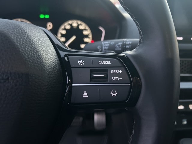 4-Wheel Disc Brakes, 8 Speakers, ABS brakes, Adaptive Cruise Control: Adaptive Cruise Control (ACC) with Low-Speed Follow, Air Conditioning, Alloy wheels, AM/FM radio, Apple CarPlay/Android Auto, Auto High-beam Headlights, Automatic temperature control, Blind Spot Information (BSI) System warning, Brake assist, Bumpers: body-color, Cloth/Leatherette Seating Surfaces, Delay-off headlights, Driver door bin, Driver vanity mirror, Dual front impact airbags, Dual front side impact airbags, Electronic Stability Control, Emergency communication system: HondaLink, Exterior Parking Camera Rear, Four wheel independent suspension, Front anti-roll bar, Front Bucket Seats, Front Center Armrest, Front reading lights, Fully automatic headlights, Heated door mirrors, Illuminated entry, Knee airbag, Lane departure: Lane Keeping Assist System (LKAS) active, Leather Shift Knob, Low tire pressure warning, Occupant sensing airbag, Outside temperature display, Overhead airbag, Panic alarm, Passenger door bin, Passenger vanity mirror, Power door mirrors, Power steering, Power windows, Radio data system, Radio: 180-Watt Audio System, Rear anti-roll bar, Rear side impact airbag, Rear window defroster, Rear window wiper, Remote keyless entry, Security system, Speed control, Speed-sensing steering, Split folding rear seat, Steering wheel mounted audio controls, Tachometer, Telescoping steering wheel, Tilt steering wheel, Traction control, Trip computer, and Wheels: 18" Gloss Black Alloy.