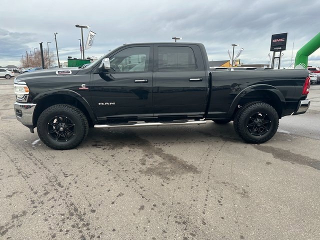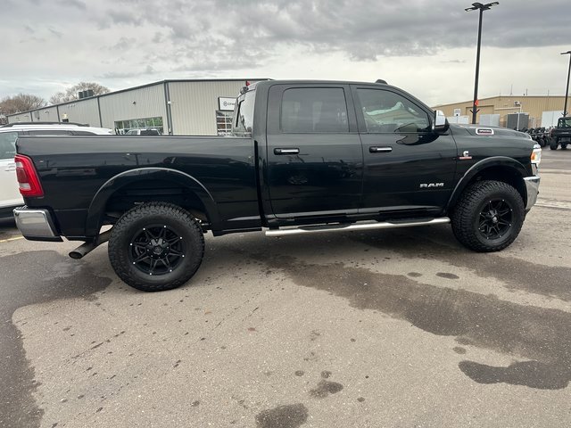 BLUETOOTH, BACK UP CAMERA, APPLE CARPLAY/ANDROID AUTO, #1 Seat Foam Cushion, 10 Speakers, 115V Auxiliary Rear Power Outlet, 17 Speaker harman kardon Premium Sound, 2 Way Rear Headrest Seat, 220 Amp Alternator, 2nd Row In Floor Storage Bins, 3.73 Axle Ratio, 4 Way Front Headrests, 4-Wheel Disc Brakes, 4G LTE Wi-Fi Hot Spot, 8.4 Touchscreen Display, ABS brakes, Active Noise Control System, Adjustable pedals, Air Conditioning, Alexa Built-In, All R1 High Radios, All Radio Equipped Vehicles, Alloy wheels, AM/FM radio: SiriusXM, Apple CarPlay, Apple CarPlay/Android Auto, Auto High Beam Headlamp Control, Auto-dimming Rear-View mirror, Automatic temperature control, Bluetooth Handsfree Phone & Audio, Brake assist, Bumpers: chrome, Center Hub, Chrome Exterior Mirrors, Cold Weather Group, Compass, Connected Travel & Traffic Services, Connectivity - US/Canada, CTR Stop Lamp w/Cargo View Camera, Dash Pass Thru Wire Circuits, Delay-off headlights, Disassociated Touchscreen Display, Driver door bin, Driver vanity mirror, Dual front impact airbags, Dual front side impact airbags, Electronic Stability Control, Electronically Controlled Throttle, Engine Block Heater, Exterior Mirrors w/Memory, Foam Bottle Insert (Door Trim Panel), Folding Flat Load Floor Storage, For Details Visit DriveUconnect.com, For More Info, Call 800-643-2112, Front anti-roll bar, Front Bumper Sight Shields, Front Center Armrest w/Storage, Front dual zone A/C, Front fog lights, Front License Plate Bracket, Front reading lights, Front Seat Back Map Pockets, Fully automatic headlights, Garage door transmitter, Global Telematics Box Module (TBM), Google Android Auto, GPS Antenna Input, GPS Navigation, HD Radio, Heated door mirrors, Heated Front Seats, Heated front seats, Heated Second Row Seats, Heated Steering Wheel, Heated steering wheel, High Back Seats, I/P Mounted Auxiliary Switches, Illuminated entry, Integrated Center Stack Radio, Integrated Voice Command w/Bluetooth, Laramie Level B Equipment Group, Leather steering wheel, Leather Trim 40/20/40 Bench Seat, Low tire pressure warning, Manufacturer's Statement of Origin, Mirror-Mounted Aux Reverse Lamps, MOPAR Winter Front Grille Cover, Occupant sensing airbag, Off-Road Information Pages, Outside temperature display, Overhead airbag, Overhead console, Panic alarm, ParkView Rear Back-Up Camera, Passenger door bin, Passenger vanity mirror, Power 8-Way Adjustable Passenger Seat, Power Adjust 8-Way Driver Seat, Power Adjustable Convex Aux Mirrors, Power Adjustable Pedals w/Memory, Power Chrome Tow Mirrors w/Convex Spotter & Memory, Power door mirrors, Power driver seat, Power passenger seat, Power steering, Power windows, Quick Order Package 2HH Laramie, Radio data system, Radio: Uconnect 5 Nav w/8.4 Display, Radio: Uconnect 5 w/8.4 Display, Radio/Driver Seat/Mirrors/Pedals Memory, Rain Sensitive Windshield Wipers, Rear 60/40 Folding Seat, Rear reading lights, Rear seat center armrest, Rear step bumper, Rear window defroster, Remote keyless entry, Remote Tailgate Release, Security system, Selectable Tire Fill Alert, SiriusXM Radio Service, SiriusXM Satellite Radio, SiriusXM w/360L, Speed control, Split folding rear seat, Steering wheel mounted audio controls, Tachometer, Tilt steering wheel, Tip Start, Traction control, Trip computer, Turn signal indicator mirrors, Variably intermittent wipers, Vendor Painted Cargo Box, Vendor Painted Cargo Box Tracking, Ventilated Front Seats, Voltmeter, Wheels: 18 x 8.0 Polished Aluminum. Diamond Black Crystal Pearlcoat Cummins 6.7L I6 Turbodiesel 6-Speed Automatic 4WD