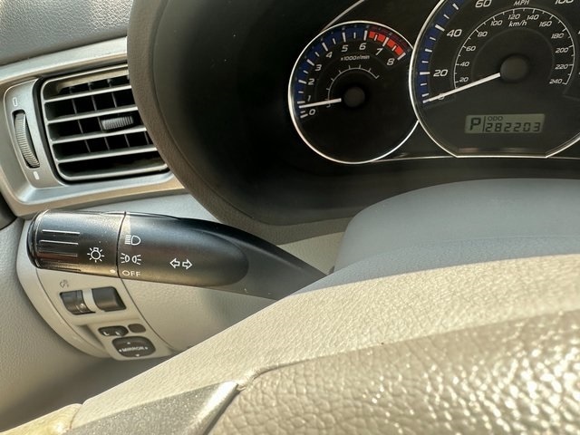 20/26 City/Highway MPG NON SMOKER, 16" x 6.5JJ Steel Wheels w/Full Covers, 4 Speakers, 4-Wheel Disc Brakes, 4.44 Axle Ratio, ABS brakes, Air Conditioning, AM/FM radio, AM/FM Stereo w/Single Disc CD Player, Anti-whiplash front head restraints, Aurora Fabric Upholstery, Brake assist, Bumpers: body-color, CD player, Driver door bin, Driver vanity mirror, Dual front impact airbags, Dual front side impact airbags, Electronic Stability Control, Four wheel independent suspension, Front anti-roll bar, Front Bucket Seats, Front Center Armrest, Front reading lights, Front Reclining Bucket Seats, Illuminated entry, Low tire pressure warning, Occupant sensing airbag, Outside temperature display, Overhead airbag, Overhead console, Panic alarm, Passenger door bin, Passenger vanity mirror, Power door mirrors, Power steering, Power windows, Radio data system, Rear anti-roll bar, Rear seat center armrest, Rear window defroster, Rear window wiper, Remote keyless entry, Security system, Speed control, Speed-sensing steering, Split folding rear seat, Tachometer, Tilt steering wheel, Traction control, Trip computer, Variably intermittent wipers. Camellia Red Pearl 2.5L H4 SMPI SOHC 16V LEV II 170hp 4-Speed Automatic with Sportshift AWD